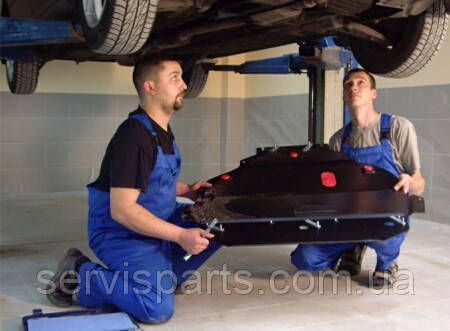 Встановлюється захист моторного відсіку в штатні отвори автомобіля, що робить можливим монтаж навіть в гаражних умовах, наприклад на ямі. Тим більше, що весь необхідний кріплення поставляється в комплекті. Але ми все ж рекомендуємо звертатися до фахівців, так як деякі конструкції передбачають додаткові перехідні балки або спеціальні монтажні втулки, які складно встановити, не маючи спеціальних навичок або інструментів.