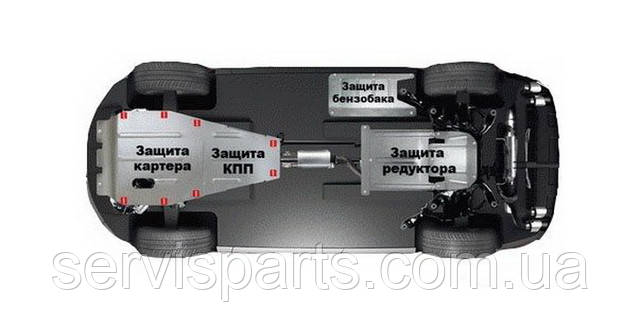 Наші захисту картера виготовлені з металу товщиною 2-3 мм і практично завжди захищають весь моторний відсік (двигун, коробку передач і радіатор). А на деякі авто передбачені захисту роздатки або паливного бака.